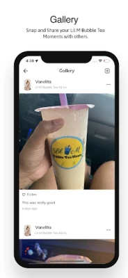 Nakon što preuzmete svoj osvježavajući napitak, zašto ne biste podijelili radost? Kroz "Galeriju" unutar aplikacije Lil M Bubble Tea, lako možete uhvatiti i podijeliti svoje posebne Lil M Bubble Tea trenutke s prijateljima i obitelji. Stvorite vlastitu kolekciju uspomena i inspirirajte druge svojim izborima. Također, u odjeljku "Moj račun" uvijek imate pregled svog stanja nagradnih bodova, detaljnu povijest narudžbi i pristupite svim važnim informacijama, osiguravajući da nikada ne propustite ekskluzivne ponude i pogodnosti koje vas čekaju.